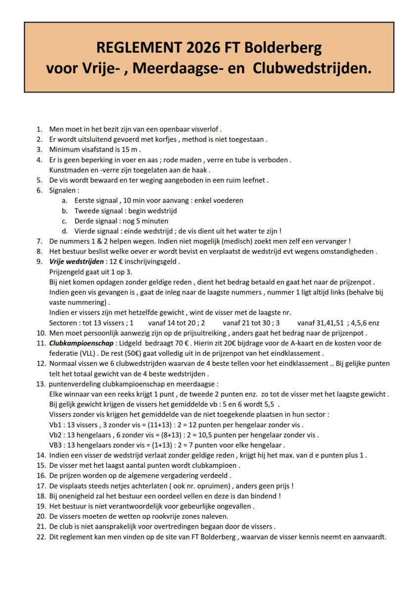 Vergeet uw vis verlof niet op zak te hebben . Kijk regelmatig of er datums veranderd zijn . Vraag naar het document voor het ziekenfonds . Welkom op de website van FT Bolderberg. Klik op hot voor aanvragen visverlof